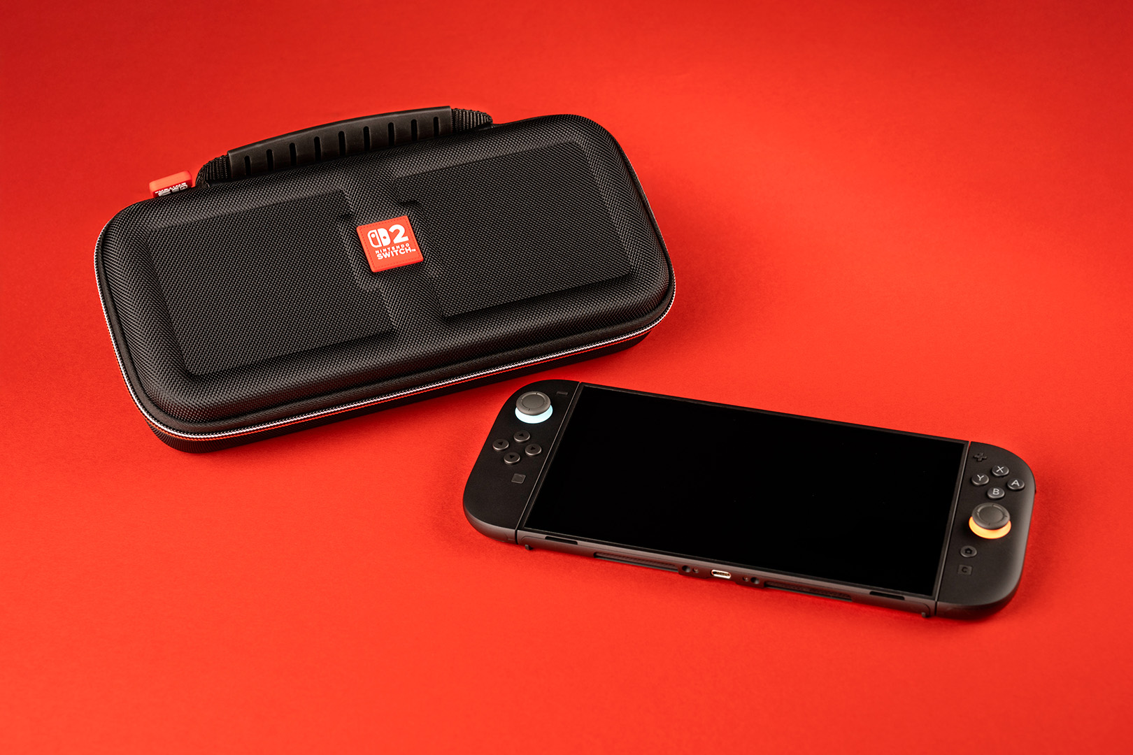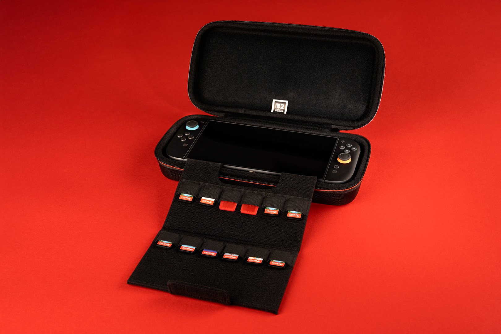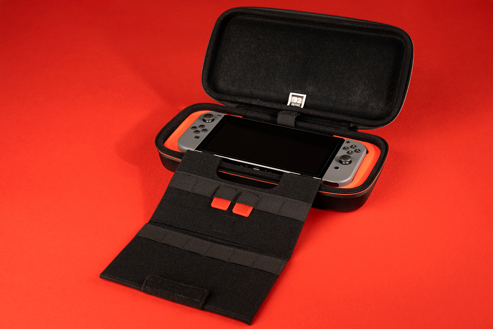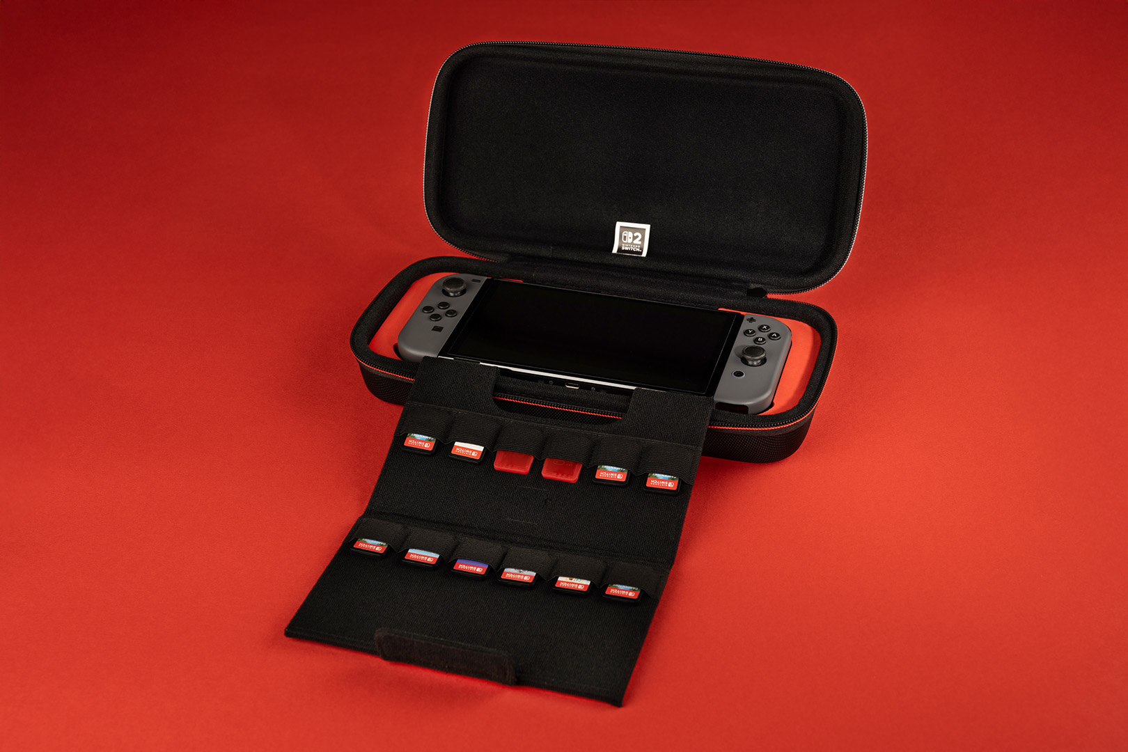 V tomto luxusním cestovním pouzdru od společnosti Nacon můžete bezpečně a pohodlně přenášet nejenom novou herní konzoli Nintendo Switch 2, ale také herní konzoli Nintendo Switch nebo Switch – OLED Model. Ústředním prvkem tohoto pouzdra je nastavitelný stojánek, který při hraní umožňuje pohodlněji sledovat dění na obrazovce, zatímco při přepravě chrání obrazovku i analogové páčky konzole před poškozením. Na jeho vnitřní straně se navíc nachází dvanáct kapsiček pro uložení karet s vašimi oblíbenými hrami. Součástí balení jsou pak také dvě menší plastová pouzdra pro microSD karty.