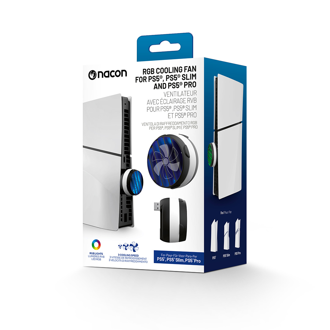 Ochraňte svou herní konzoli PlayStation 5 před přehřátím a pomozte jí dosáhnout optimálního výkonu s tímto chladicím větráčkem od společnosti Nacon. Odměnou vám bude plynulý herní zážitek při zdolávání mnoha špičkových her dostupných pro tuto herní konzoli. Větráček se připojuje do USB-A portu na zadní straně konzole a na jeho horní straně se nachází tlačítko, s jehož pomocí můžete snadno přepínat mezi třemi různými rychlostmi otáček. Celkový dojem z používání tohoto větráčku poté umocňuje jeho dynamické RGB osvětlení.